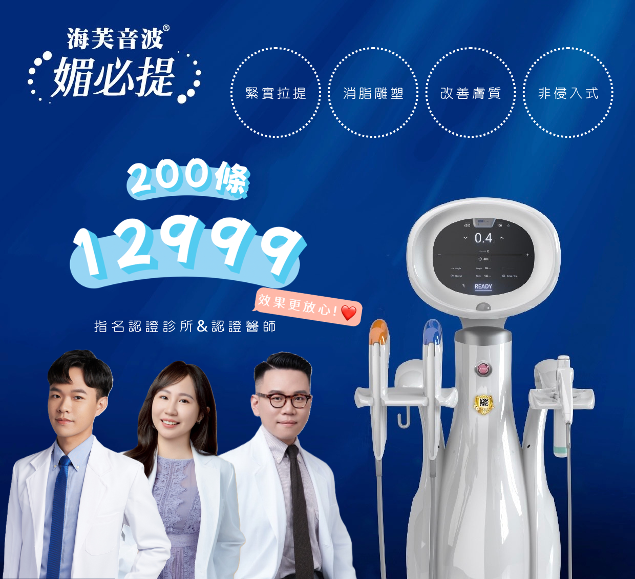 【認證診所+認證醫師,原廠把關,效果更放心】 由通過原廠認證之專業醫師操作,全程採用原廠機台與原廠探頭,確保療程安全性與效果最大化。 【專業客製化評估】 每個人的肌膚狀況與老化程度皆不相同。醫師將根據您的膚質狀態、肌膚鬆弛程度以及面部結構,制定最適合您的治療計畫。 窈窕佳人 × 窈窕然髮 × 蓁美學健康預防診所——重啟妳的緊緻力! 蓁美學,蓁心守護你的美麗
